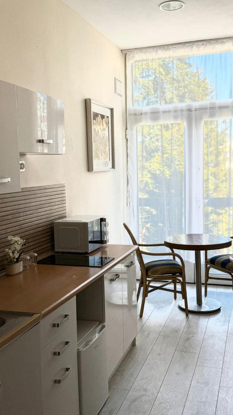 Apartament z 1 sypialnią. Guests will have a special experience as this apartment features a hot tub. This spacious apartment is comprised of 1 bedroom, kitchen, a terrace and 1 bathroom with a shower. The well-equipped kitchen features a stovetop, a refrigerator, kitchenware and a microwave. Featuring a balcony with garden views, this apartment also offers a tea and coffee maker and a flat-screen TV. The unit offers 2 beds. Apartament - 4 osobowy. Powierzchnia pokoju ok.: 100 mkw.